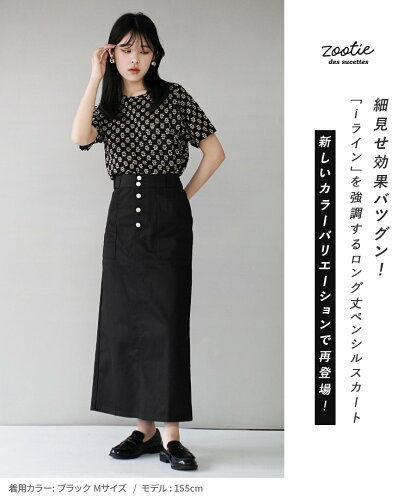 スカート M/L タイトなシルエットの ツイル ロングスカート 。 レディース ボトムス ロンスカ タイトスカート ロング 膝下 ひざ下 綿100% 大きいサイズ ゆったり 【メール便可22】◆zootie(ズーティー):コットンツイル ペンシルスカート